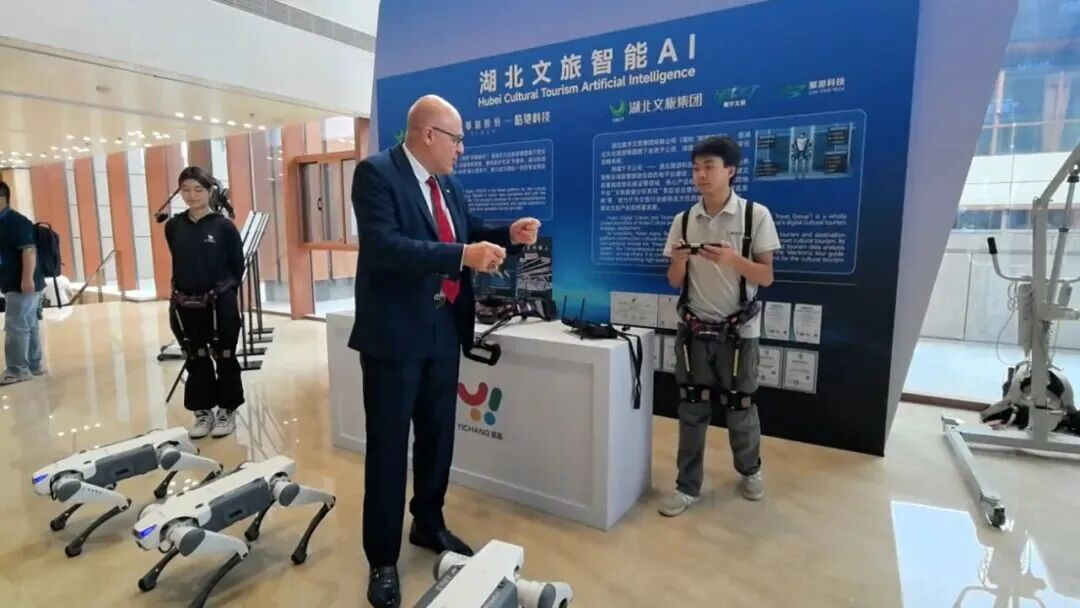 全球旅行商大會宜昌啟幕,湖北文旅集團展示“文旅+科技”新體驗。9月6日,以“知音湖北 大美長江”為主題的知音湖北?2025全球旅行商大會暨宜昌市文化旅游發(fā)展大會在湖北宜昌召開,本次大會由湖北省文化和旅游廳、宜昌市人民政府聯(lián)合主辦。來自40多個國家和地區(qū)的旅行商及各界代表共600余人齊聚長江之畔,以“知音”為紐帶共話合作,以行動助力“引客入鄂”戰(zhàn)略,現(xiàn)場多項文旅合作項目集中簽約,為湖北文旅國際化發(fā)展注入強勁動力。湖北文旅集團攜多款智能設備終端亮相大會,其中外骨骼機器人和機器狗成為全場焦點,吸引了眾多國際嘉賓駐足體驗。