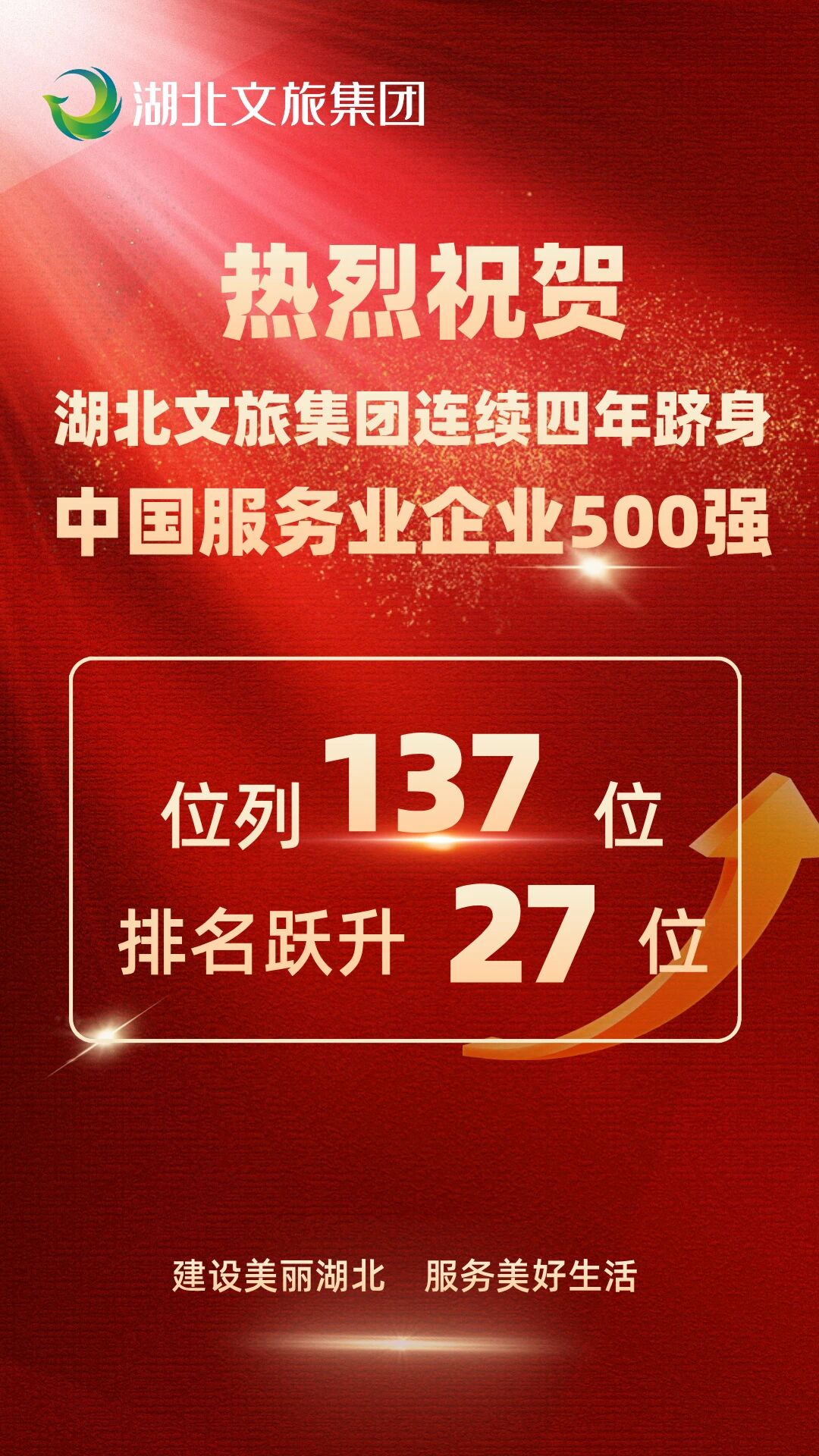 湖北文旅集團(tuán)再上榜中國服務(wù)業(yè)企業(yè)500強(qiáng),排名第137位。9月18日,中國企業(yè)聯(lián)合會(huì)、中國企業(yè)家協(xié)會(huì)在重慶發(fā)布“2025中國服務(wù)業(yè)企業(yè)500強(qiáng)”榜單。湖北文旅集團(tuán)憑借2024年604.80億元的營業(yè)收入,再度躋身榜單,實(shí)現(xiàn)連續(xù)四年上榜,排名第137位,較2024年躍升27個(gè)位次。近年來,集團(tuán)聚焦“四化轉(zhuǎn)型”,系統(tǒng)推進(jìn)“穩(wěn)增長、調(diào)結(jié)構(gòu)、新產(chǎn)品、盤存量”四大行動(dòng),加速構(gòu)建主業(yè)突出、鏈條完整、效能卓越的文旅現(xiàn)代產(chǎn)業(yè)體系,為湖北建設(shè)世界知名文化旅游目的地貢獻(xiàn)力量。